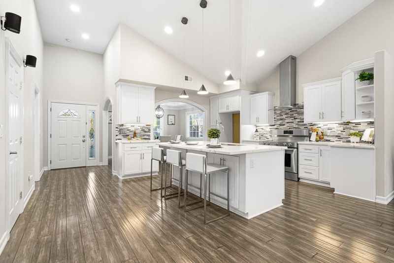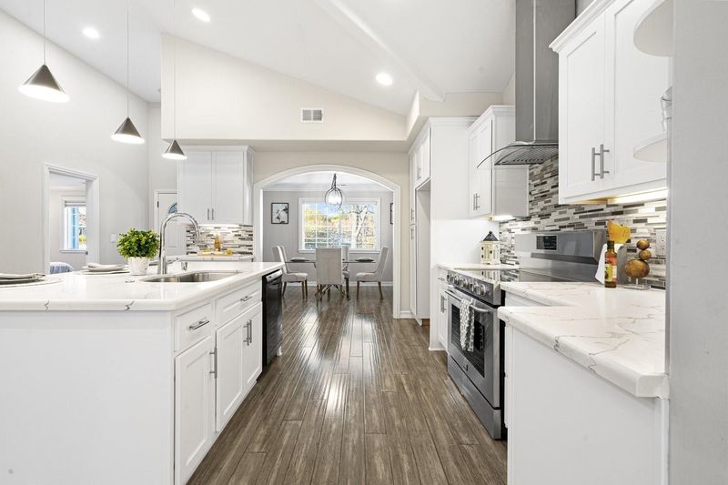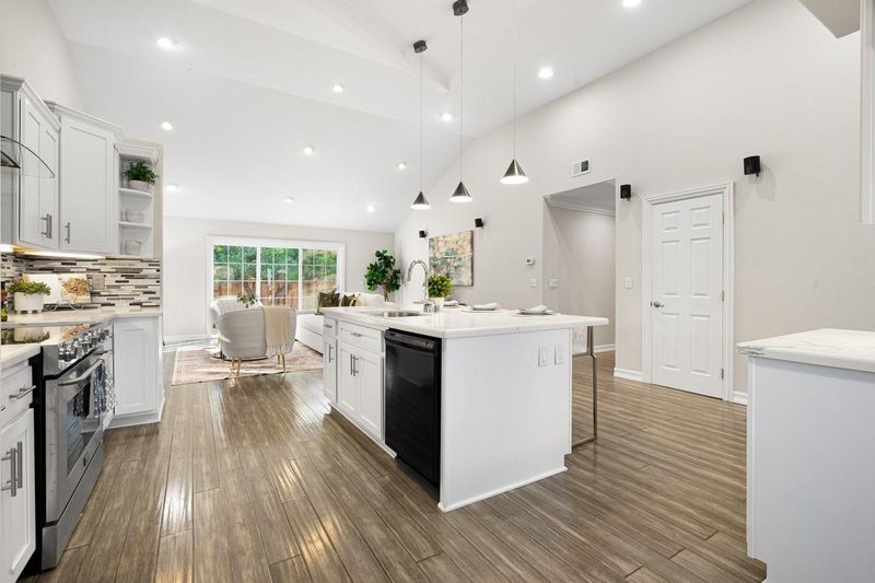 - Countertop - Quartz, Dishwasher, Garbage Disposal, Hood Over Range, Island with Sink, Oven Range - Electric, Pantry