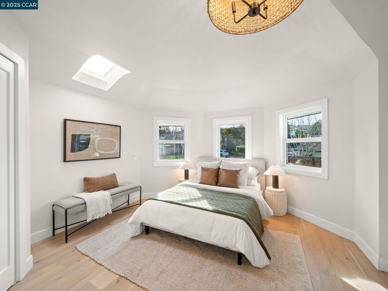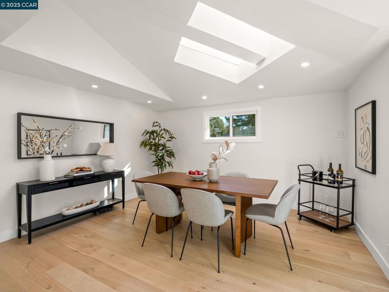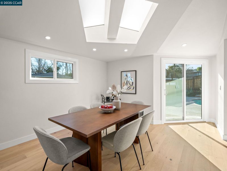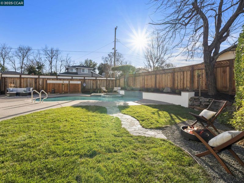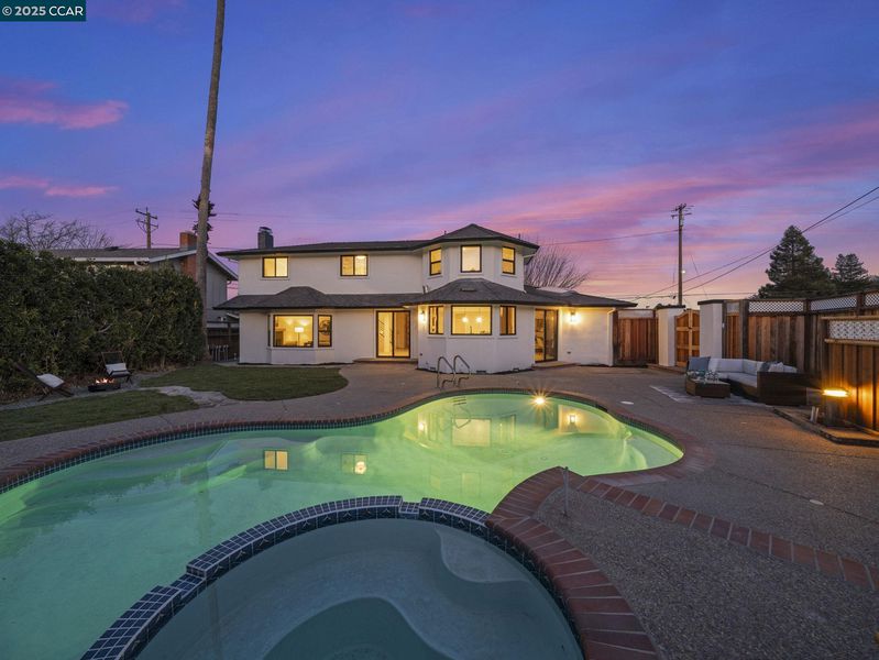 Welcome to your dream modern farmhouse, recently renovated and nestled in the desirable West Dublin area. This East-facing home boasts an expansive 2,000 square foot open floor plan that invites abundant natural light. The living room, warm and welcoming with its cozy fireplace, seamlessly connects to a kitchen/dining area graced by skylights. Culinary enthusiasts will delight in the kitchen, equipped with sleek European cabinets, a convenient pot filler, island surrounded w/ bar stools, and top-of-the-line stainless steel appliances. This lovely home offers versatile living with a primary bedroom on the first floor, featuring two closets, and an optional primary suite upstairs, adding flexibility to your living arrangements. The upstairs includes three additional bedrooms and a bathroom. Step outside to a flat backyard, where the in-ground pool and spa promise endless summers of fun and relaxation. The space is perfect for hosting gatherings, with plenty of room for everyone to enjoy. Located in a tranquil n