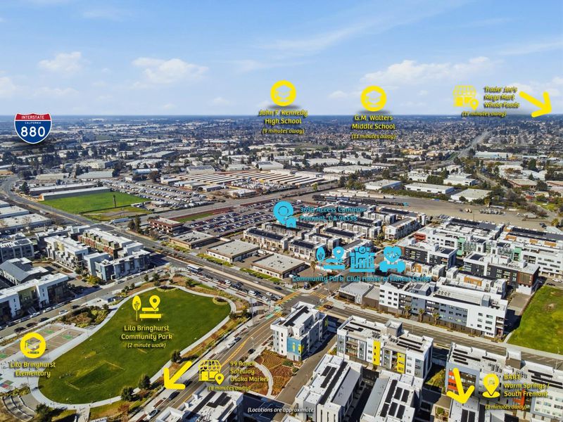 Welcome to this beautifully crafted, interior-facing home within the community. Like-new Toll Brothers townhouse-style condo built in 2023, offering abundant natural light, elegant wood flooring, and new blinds throughout. The open-concept living, dining, and kitchen areas are ideal for everyday living and entertaining, featuring a modern kitchen with ample counter space, quality cabinetry, and a large center island. One bedroom with an en-suite bath is conveniently located on the entry level, perfect for guests or a home office, while upstairs includes a spacious primary suite, an additional bedroom, and a laundry room. Energy-efficient features include solar panels, a tankless water heater, and a side-by-side two-car garage with an EV-ready outlet. Low $314 HOA includes access to a fitness center, clubhouse, playgrounds, and beautifully landscaped common areas. Ideally located near Warm Springs BART with easy access to I-880 and I-680, shops, and just minutes from top-rated Lila Bringhurst Elementary School (10/10), offering the highly regarded Mandarin Immersion Program (MIP). Could this be any more perfect? Your future dream home awaits. Come see it and make it yours today!