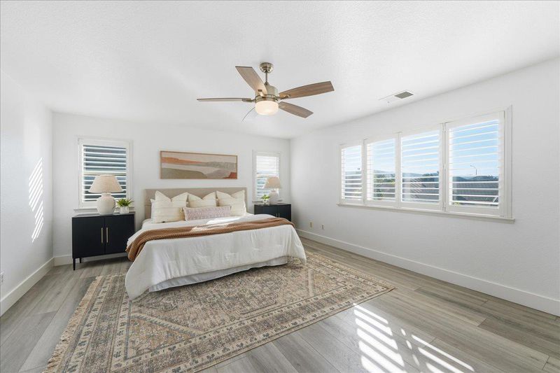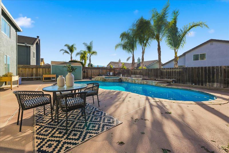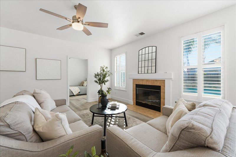 Discover this spacious 3200 sq ft home in the heart of Hollister, offering a blend of comfort and style. The kitchen is a chef's delight, featuring tile countertops, a gas oven range, dishwasher, refrigerator, and garbage disposal, all seamlessly integrated into a kitchen/family room combo. With 4 bedrooms, including a ground floor bedroom (that could be used as office), and 3 full bathrooms, the home provides ample space for family living. Generous size guest rooms with walk in closets. Escape to upstairs bonus room would make a spacious game room or second family room the whole family. The primary bathroom boasts an oversized tub and stall shower. Enjoy a cozy evening by the fireplace or a meal in the dining areas, which include a breakfast nook and dining area in the living room. Flooring options include carpet, luxury vinyl, and other materials. Equipped with central AC and ceiling fans, this home ensures comfort year-round. The built-in vacuum, high ceilings, and walk-in closets add practicality and elegance. The property features a pool, an in-ground delight with full sun exposure. 3 car garage provides plenty of parking and storage. Inside Laundry. Whole house water filter. Located within blocks of Cerra Vista Elementary School. NO HOA!
