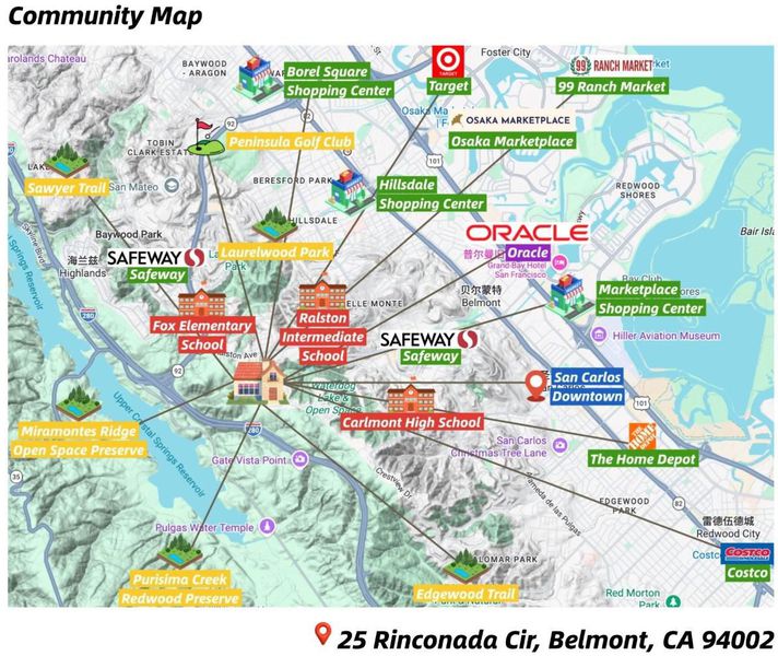 Breathtaking Bay Views in Belmonts Sought-After Hallmark Neighborhood! This beautifully upgraded 3 bedroom and office, 2.5 bath home offers an exceptional blend of comfort, light, and location. Soaring ceilings and an open floor plan create a bright and airy living and dining space, complemented by a spacious kitchen designed for everyday living and entertaining. The oversized primary suite serves as a private retreat featuring scenic windows, a cozy fireplace, and its own private deck to take in the stunning views. Additional highlights include an indoor garden and thoughtfully designed living spaces throughout. Ideally situated near top-rated schools (Fox Elementary, Ralston Intermediate, and Carlmont High, buyer to verify), scenic parks and hiking trails, as well as convenient access to Highways 92, 280, and 101 for easy commuting to San Francisco, the East Bay, and Silicon Valley. A rare opportunity to own in one of Belmonts most desirable neighborhoods.