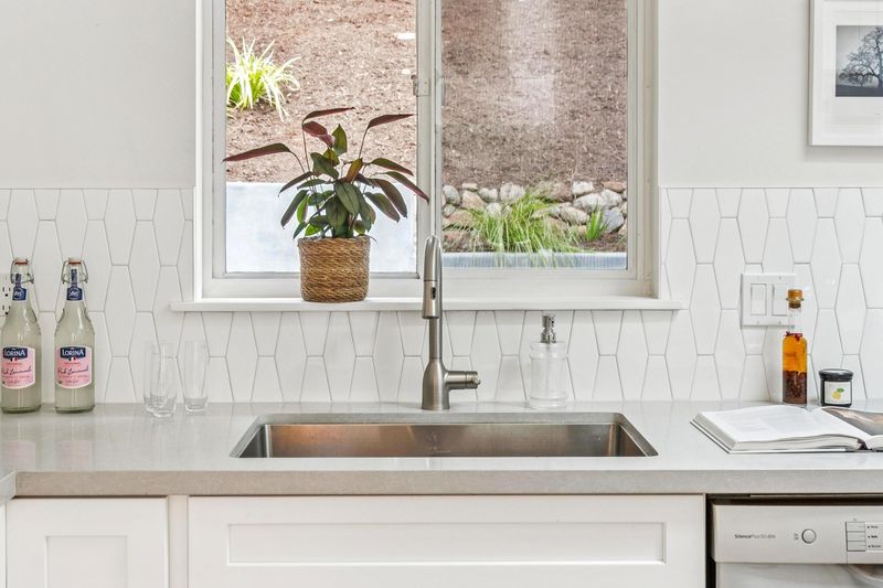 - Dishwasher, Electric Range, Refrigerator, Dryer, Washer, Counter - Solid Surface, Electric Range/Cooktop, Skylight(s), Updated Kitchen
