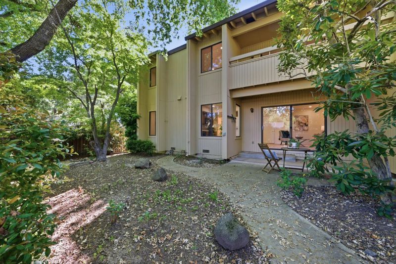 Duet-style residence that LIVES LIKE A SINGLE FAMILY HOME in a sought-after Cupertino location offering top-rated schools. This bright and airy two-story home features 3 beds, 2.5 baths, and 1,641 sf with vaulted ceilings and abundant natural light. Fresh 2026 updates include new interior paint, new interior doors, new carpet, and recessed lighting throughout. Owned solar provides energy efficiency and long-term savings. The functional floorplan offers separate living, family, and dining areas, plus a spacious primary suite with vaulted ceiling, private balcony, and large walk-in closet. Additional highlights include central A/C, indoor laundry, and a clean, finished 2-car garage. Enjoy a serene backyard setting with patio, mature trees, and pre-wiring for a hot tub. Private 5-home community includes a pool, large lawn area, and paved pathways. Ideally located near major Silicon Valley tech campuses, minutes to De Anza College, a variety of outdoor recreation options, shopping, and dining. Schools: Steven's Creek Elem, Kennedy MS, Monta Vista HS (buyer to verify with school districts). PUD ownership with fee simple lot. Buyer owns the home and the land. Small 5-unit HOA. Open House Sat/Sun 4/4-4/5 from 1-4pm.