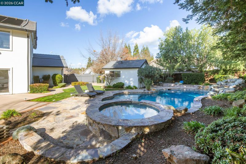 Stunning 5-bedroom, 3-bath residence in Tapestry neighborhood, one of Livermore’s most desirable communities, ideally positioned on a premium end-of-court lot. Offering 3,117 square feet of beautifully appointed living space on a 14,391 square foot lot, this exceptional home delivers space, privacy, and comfort just minutes from renowned local wineries. The thoughtfully designed floor plan features a full bedroom and bathroom on the main level — ideal for guests or multigenerational living — along with a dedicated office perfect for remote work. Upstairs includes a spacious primary bedroom, three additional bedrooms, and a full bath, providing comfort and space for the entire family. The recently remodeled kitchen is a true centerpiece, showcasing modern finishes, a gas range, wine refrigerators, farmhouse sink, pendulum lights, pantry, and abundant prep space — seamlessly flowing into inviting living areas designed for effortless entertaining. Step outside to your private backyard oasis featuring a sparkling pool, relaxing hot tub, outdoor fire pit, work out room, and expansive grounds that maximize the oversized lot. Leased solar supports the home’s energy efficiency, while owned solar is dedicated to heating the pool for extended seasonal enjoyment.