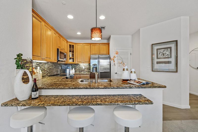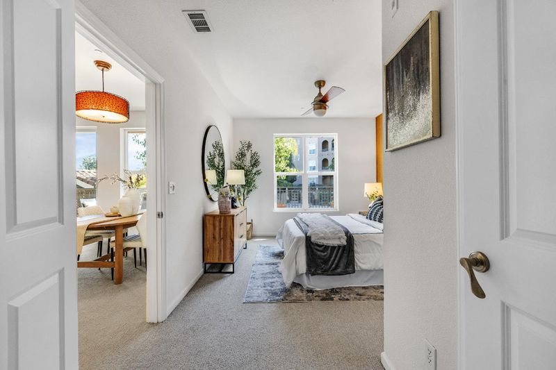 Perfect 2-bedroom, 2-bathroom, 1,193 sq ft ground-floor condo in Villa Fontanas, built in 2008. Prime location within the complex, overlooking the peaceful courtyard and featuring a large patio. This spacious home offers two master suites, granite countertops in the kitchen and bathrooms, elegant wood cabinetry, and fresh paint throughout. Enjoy brand-new carpet, all new appliances, recessed lighting in the kitchen, ceiling fans in the primary bedroom. Community amenities include a pool, spa, gym, and community room. One assigned parking spot in the underground garage and another at a designated carport. Conveniently located with easy access to Highway 280, just minutes from Santana Row, Downtown San Jose, and Downtown Campbell. Walk to the nearby light-rail station.