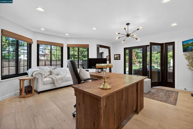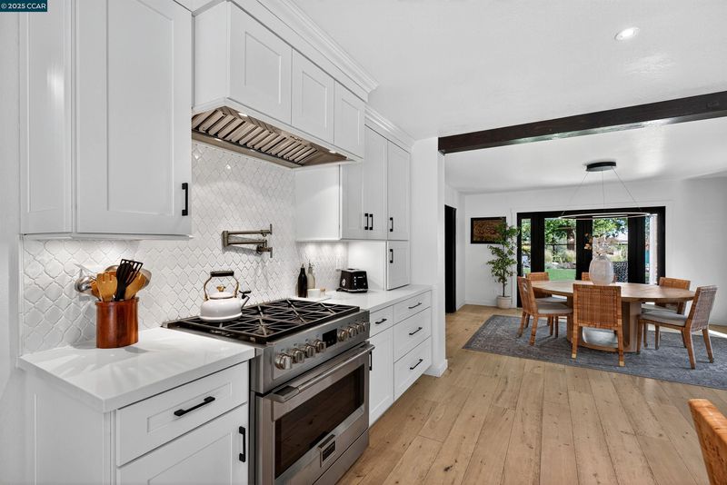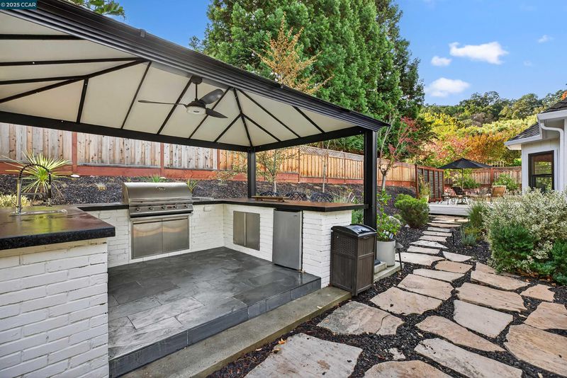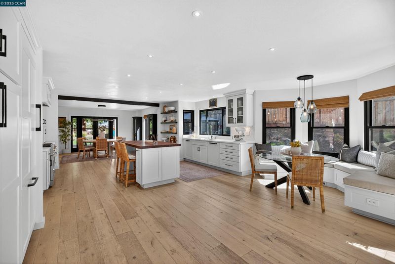 Modern luxury living in this completely remodeled 3,207 sq ft home featuring 4 bedrooms plus office, 3 full bathrooms, & one-half bathroom. Situated on a private .84-acre lot, this residence is designed for those who love the outdoors, offering exceptional indoor-outdoor flow and stylish finishes throughout. Open eat-in kitchen and family room combination with custom shaker cabinetry, butcher block island, built-in breakfast nook seating, 6-burner Fulgor gas range, wine refrigerator, and abundant storage. The spacious family room includes a shiplap ceiling & gas fireplace, opening to a large outdoor deck. A generous formal living and dining room features French doors that lead to a California room for year-round enjoyment. Four oversized bedrooms include a luxurious primary suite with an impressive bathroom & closet space. A second ensuite bedroom plus 2 additional bedrooms complete the upstairs. The executive office located on the lower-level features beautiful glass doors, offering both style & privacy. The professionally landscaped yard showcases an outdoor kitchen, sport court, custom fountain, and majestic redwoods. The property also includes a 3-car garage, providing storage and convenience. Located just steps from local trails & within easy reach of Briones Regional Park.