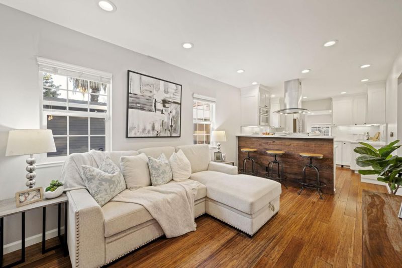 Beautiful single-family home located in the highly desirable Rose Garden/ Alameda neighborhood of San Jose. This fully remodeled three-bedroom one-bath residence offers a versatile and functional layout with a spacious living area and a dedicated downstairs home office. Engineered bamboo hardwood flooring flows throughout the home, creating warmth and durability. The gourmet kitchen is thoughtfully designed with quartz countertops, crisp white cabinetry, newer appliances, and a built-in desk with bar seating, ideal for casual dining or working from home. The updated bathroom features tile floors and walls, dual sinks, and quartz countertops. Smart home technology is integrated throughout with Nest products, enhancing comfort and energy efficiency. Additional highlights include an attached garage with direct interior access and generous storage, along with a private concrete patio perfect for outdoor entertaining. Ideally located just steps from Whole Foods, San Pedro Square, and the SAP Center, with easy access to Highway 87 and San Jose Diridon. Truly move-in ready in a prime location.