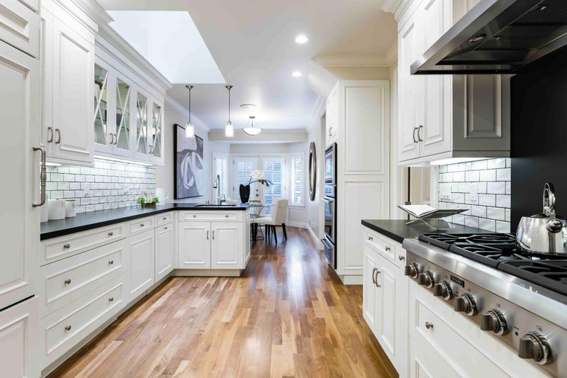 - Cooktop - Gas, Countertop - Granite, Dishwasher, Exhaust Fan, Garbage Disposal, Hookups - Gas, Microwave, Oven - Built-In, Oven - Electric, Oven - Self Cleaning, Refrigerator, Skylight, Warming Drawer