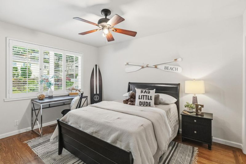 This traditional-style home is on one of the quietest streets in San Carlos. The house has a unique floor plan with 5 bedrooms on the same floor plus a bonus space that can be a 6th bedroom for guests, au pairs, a workout room or whatever fits your lifestyle needs. The kitchen, family room and backyard look out to sweeping views of the bay. The backyard boasts a flat yard space, a water fountain and a large deck for outdoor entertainment or enjoying the incredible vistas. The bright kitchen opens up to a family room and leads to the backyard. This space is perfectly located for indoor and outdoor entertainment. The flow of the interior living spaces are also great for entertaining family and friends. You will find an eat-in kitchen, formal dining room and formal living room that provide the perfect party flow. The primary bedroom has a large sliding glass door to take advantage of the views and opens to an oversized deck to enjoy your morning coffee. The property features solar power. The attached 2-car garage has additional storage and easy access to the downstairs bonus area. This lower living space offers privacy for overnight guests. The property is near hiking trails at Eaton Park and Big Canyon Park, has access to other neighborhood parks and is a great commute location.