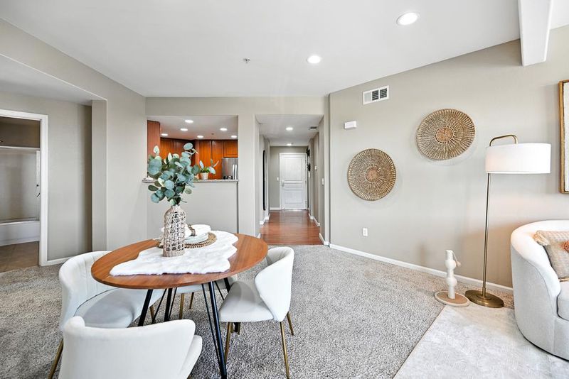 This bright and spacious corner unit, conveniently located close to the elevator in a secure complex, is a rare find! The well-appointed kitchen features granite countertops, a breakfast bar, all stainless steel appliances, and plentiful cabinetry. It opens directly onto a large, light-filled living/dining area and an oversized covered patioperfect for al fresco dining and entertaining guests. Three generous bedrooms include a private master suite with two large closets and an adjoining spastyle bath, plus a full guest bath and in-unit laundry. Residents enjoy access to a sparkling community pool, fitness center, and childrens play area. Two reserved side-by-side parking spaces are located in the underground garage. Ideally situated, its a short trip to Rivermark Plaza shopping and Don Callejon School, and just steps to the peaceful Guadalupe River Trail. Oracle is right across the street, Levis Stadium is a short walk away, and commuting to high-tech employers is a breeze!