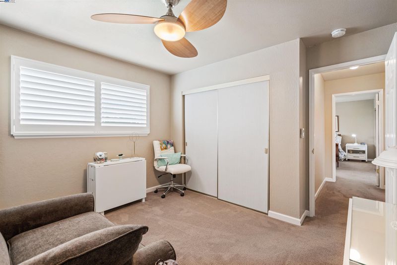 Welcome home to this NORTH facing pristine and elegant single-story home. This former model home in the Semi-Custom home portion of Los Altos Heights has been updated throughout by the Seller. Some of many features include OWNED SOLAR, new roof replacement in 2023, custom Plantation Shutters in Living Room, Office and Bedrooms and Six Panel Doors throughout the home. The eat in kitchen and Heart of the home, showcases Cherry Slab Cabinets to the ceiling, Granite Slab countertops and backsplash, closet pantry, stainless steel appliances, SS Miele Dishwasher and opens to the Family Room. Slider in Family Room opens to the expansive back yard and brings in light and breathtaking views of the hills and location for POSSIBLE ADU (please check with city requirments). Centrally located to the Ace Train station, 580 freeway, state route 84, and an 8.5 mile drive to Dublin/Pleasanton BART stations. Livermore is home to an abundant wine country, hiking trails, Lake Del Valle, the Bankhead Theater, historic downtown with shops and restaurants and the very popular San Francisco Premium Outlets and famous Livermore Rodeo. This beautiful home is move- in ready and has everything for you to create your new memories. NO HOA.