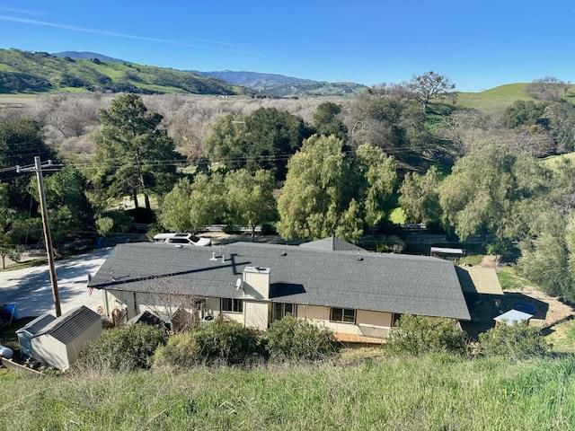 Welcome to this charming 3-bedroom, 2-bathroom home nestled in the serene city of Tres Pinos! Spanning 1,402 sq ft, on a 62,291 sq ft. lot with stunning views! This property offers a blend of comfort and functionality. The kitchen is a chef's delight, featuring a 220 Volt Outlet, granite countertops, a built-in oven, electric cooktop, dishwasher, garbage disposal, and microwave, all designed to make meal preparation a breeze. The home boasts carpet and vinyl/linoleum flooring, providing both warmth and durability. Relax by the classic home living room metal heating fireplace, and enjoy the convenience of an inside laundry setup with both 110V and 220V electricity hookups. The primary bathroom features a stall shower, while the other offers a shower over tub. Additional amenities include a walk-in closet and central AC with ceiling fans for optimal comfort. The property is part of the Tres Pinos Union Elementary School District and features a spacious lot with various structures such as a shed, storage facility, and workshop. With ample parking in the 2-car garage, this home is perfectly suited for practical and comfortable living.