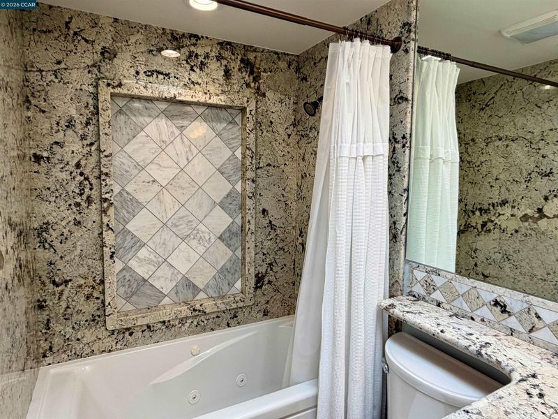 - Shower Over Tub, Solid Surface, Tile, Tub with Jets, Updated Baths, Granite, Marble