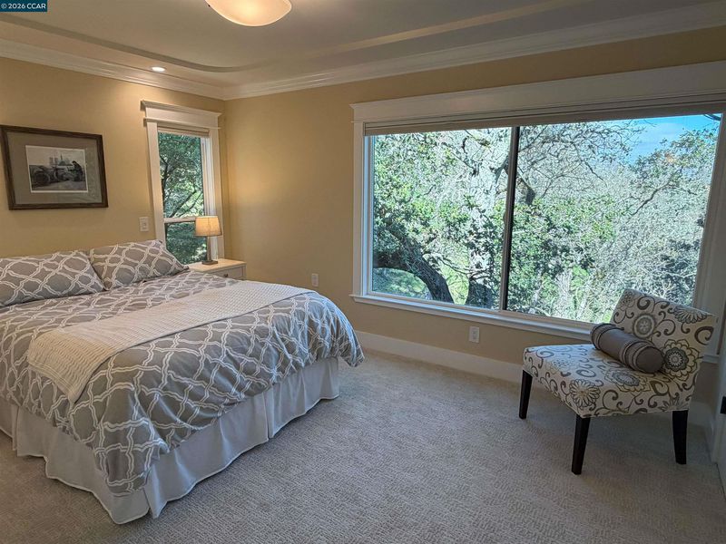 Beautifully reimagined Monterey model 2BR/2BA end unit filled with natural light and thoughtful upgrades throughout. Seamless reconfiguration enhances flow and functionality. Remodeled kitchen with custom cabinetry and stainless steel appliances. Updated bathrooms with modern finishes, including a bench in the primary shower. Crown molding and custom Smith & Noble window coverings throughout. Dining area features a modern coffered ceiling and custom cabinet wall with display lighting. Primary suite offers a tray ceiling and walk-in closet. Wired for surround sound with built-in speakers. Enjoy a peaceful, tree-surrounded back deck. A must-see home. Open Sunday 2/15 from 1-4pm.