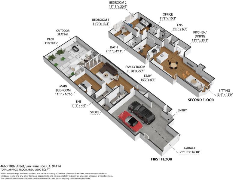 Welcome home to this iconic Victorian home in the heart of San Francisco which sets the benchmark for modern finishes and vibrant living. The home showcases grand scale and beautiful contemporary accents with a floor plan perfect for family time and entertaining. This bi-level condo spans two levels and features 3 bedrooms/3.5 bathrooms, a dream chef's kitchen with a large marble island, custom cabinetry, and a full-size wine fridge. Upstairs, there is a sun-drenched great room with kitchen, powder room, serene primary en-suite, second bedroom with view of your private yard, and a den/office. Downstairs features a laundry room with ample storage, a second large family room with wet bar that leads to a private garden with gas fire pit and built-in grill, as well as direct internal access to the garage. Located on a quiet street only a short distance away from world-class amenities, 4660 18th St provides an exciting opportunity to own a part of San Francisco history in a truly premier setting.