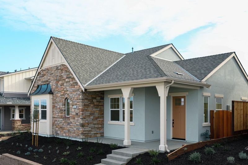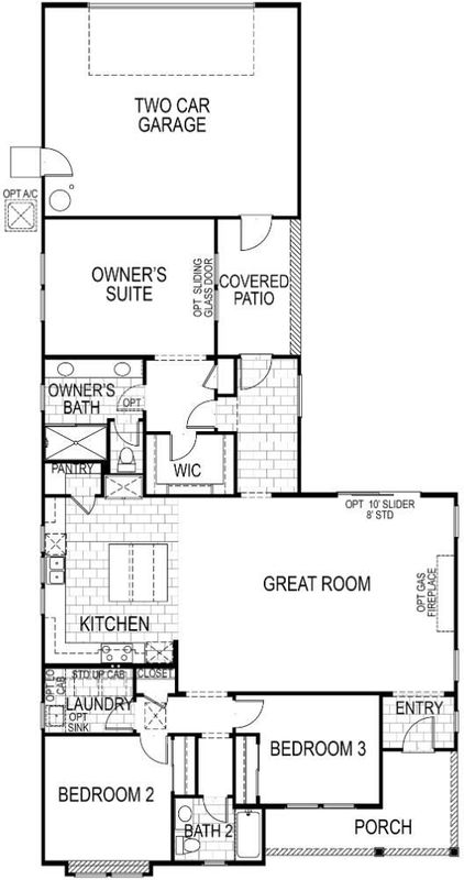 Key Features: Quartz countertops, stone-colored cabinetry, and brushed nickel finishes Stainless steel appliances, including cooktop and dishwasher Private alley access for additional parking Step into an open and spacious great room that blends the living area and gourmet kitchen, creating the perfect setting for everyday living and entertaining. The kitchen offers generous counter space, a central island, and modern finishes that elevate the homes style and functionality. The dining room sits just beyond the great room, offering a private area ideal for family meals or hosting larger gatherings. A secondary bedroom and full bathroom are conveniently located off the kitchen, along with a dedicated laundry room featuring upper cabinets for storage and a separate coat closet. The owners suite is situated on the opposite side of the home for added privacy and includes a spacious walk-in closet and dual-sink vanity. Optional sliding glass doors open directly to the covered patio, extending the living space outdoors.