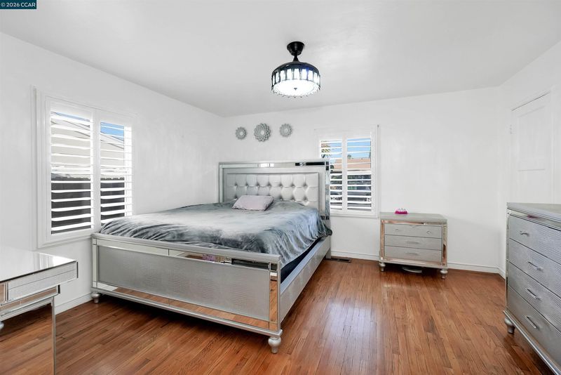 Beautifully maintained and move-in ready, 2-bedroom, 1-bath home with a Bonus Room that can easily serve as a 3rd bedroom, home office, or guest space. Features hardwood floors, elegant shutters, dual-pane windows, and central heat and air for year-round comfort. Solar panels help keep energy costs down, and newer sewer lateral provide added peace of mind for the next owner. Long side driveway with ample space for multiple vehicles, an RV, or boat. The detached 2-car garage offers additional parking and storage options. The low-maintenance backyard is perfect for relaxing or entertaining without the extra upkeep. Located in a family-oriented neighborhood close to parks and schools, with easy access to freeways and transportation, this well-cared-for home combines comfort, convenience, and versatility.