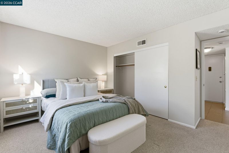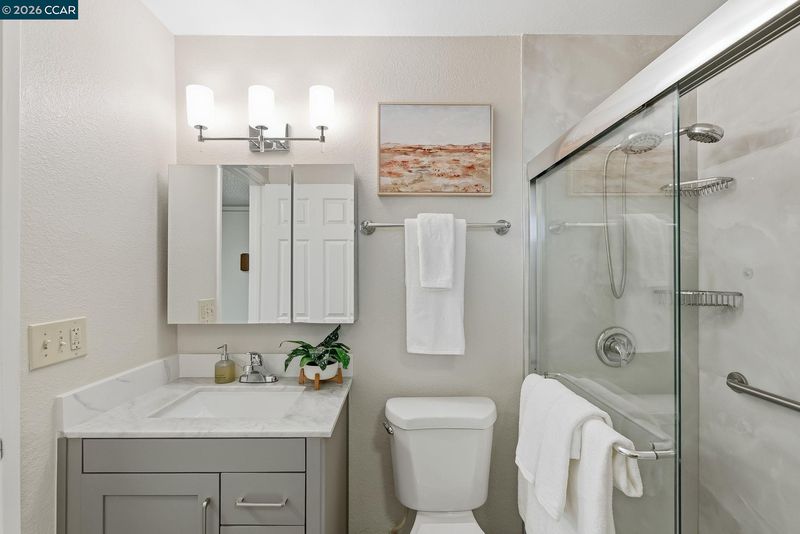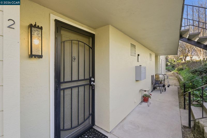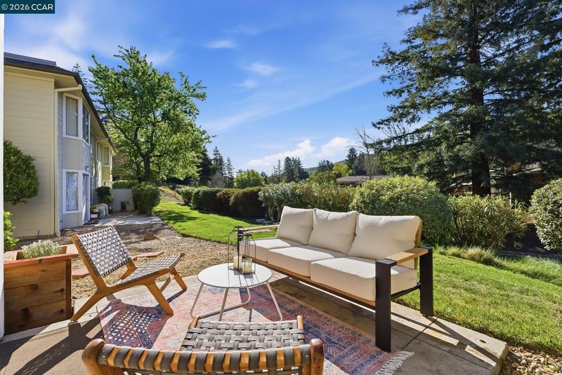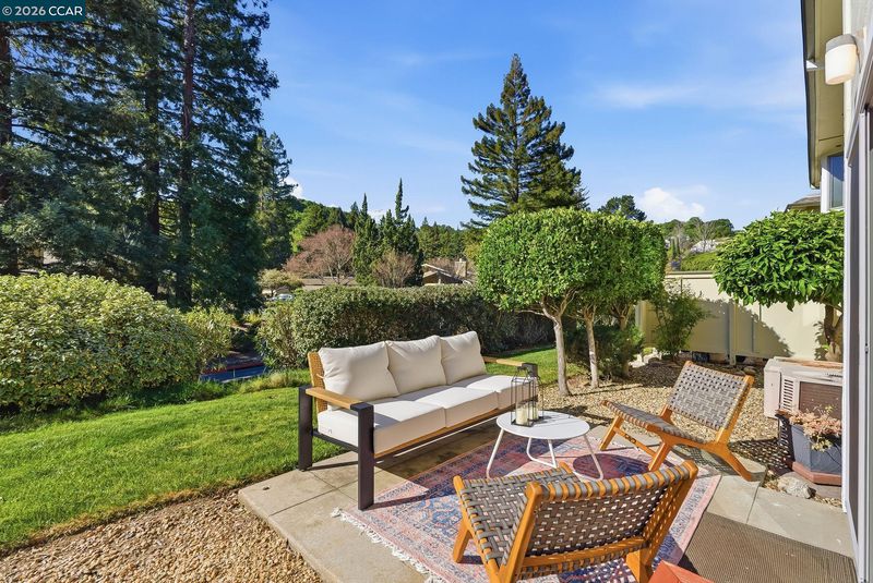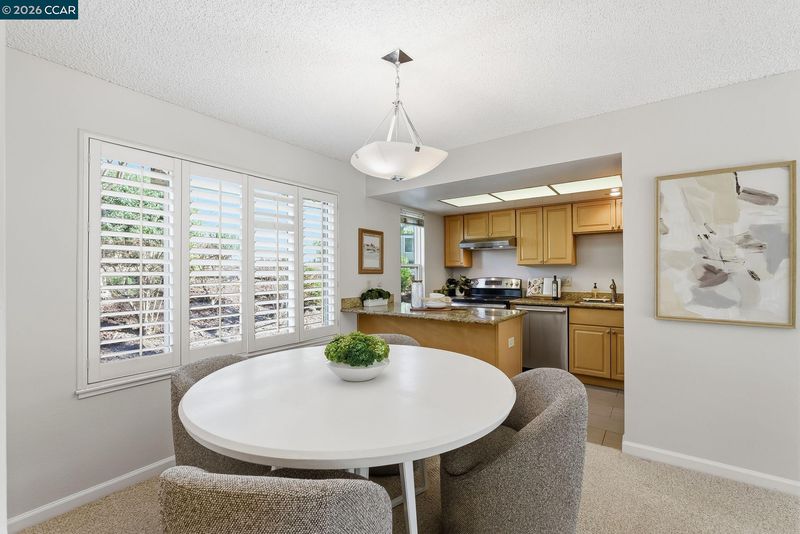 This light & bright ground-floor Cypress model condo (not a co-op) offers an inviting blend of comfort, privacy, and thoughtful updates. Fresh interior paint, dual-pane windows, central air conditioning, plantation shutters, and top-down/bottom-up cellular shades create a clean, modern feel throughout. Bay windows and a sliding glass door fill the spacious living and dining area with natural light. The recently remodeled bathroom features a generous walk-in shower with grab bars, dual shower heads with a handheld option, new vanity, updated lighting, modern hardware and a separate laundry room with side-by-side washer and dryer. The updated kitchen includes maple cabinetry, extensive granite countertops with bar seating, and stainless steel appliances, including a refrigerator. The inviting outdoor patio offers peaceful views and is surprisingly quiet thanks to its elevated lot. Additional conveniences include mailboxes smartly relocated near the front door, carport #7 with extra storage, and ample guest parking. Rossmoor is a premier 55+ gated community best known for its resort-style amenities, active social scene with over 200 clubs, and scenic 1,800-acre location. Residents enjoy 27 holes of golf, five clubhouses, multiple pools, fitness centers, and maintenance-free living.