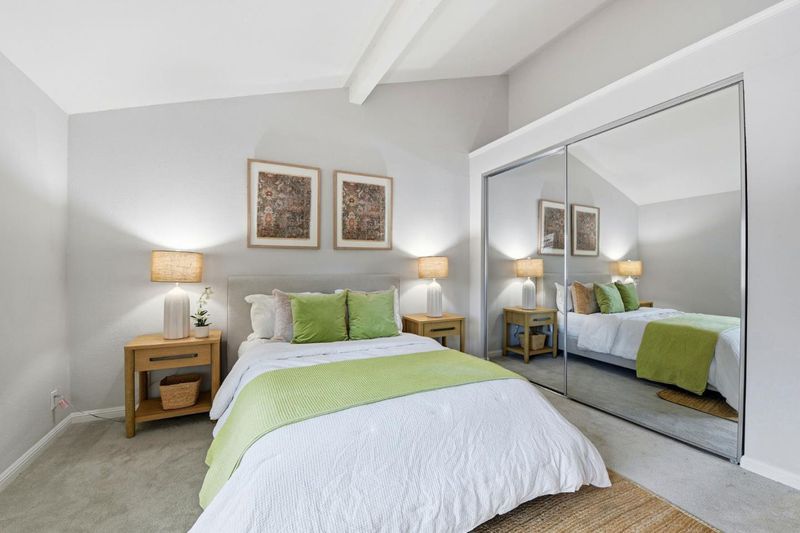 Updated top-floor corner condo nestled among redwoods in a quiet, resort-style community in a highly desirable Santa Clara location. This bright and airy home features vaulted ceilings, dual-pane windows, a cozy wood-burning fireplace, a spacious private balcony, and new in-unit washer and dryer. The kitchen is beautifully updated with quartz countertops, a garden window, stainless steel appliances, tile flooring, and a stylish backsplash. The HOA covers water and garbage, and maintains the pool, spa, clubhouse, roof, common areas, and earthquake insurance offering truly low-maintenance living. Ideally located just minutes from NVIDIA, Apple, major transit routes, shopping, schools, and freeways. Enjoy the perfect blend of tranquility and convenience. This is one you don't want to miss!