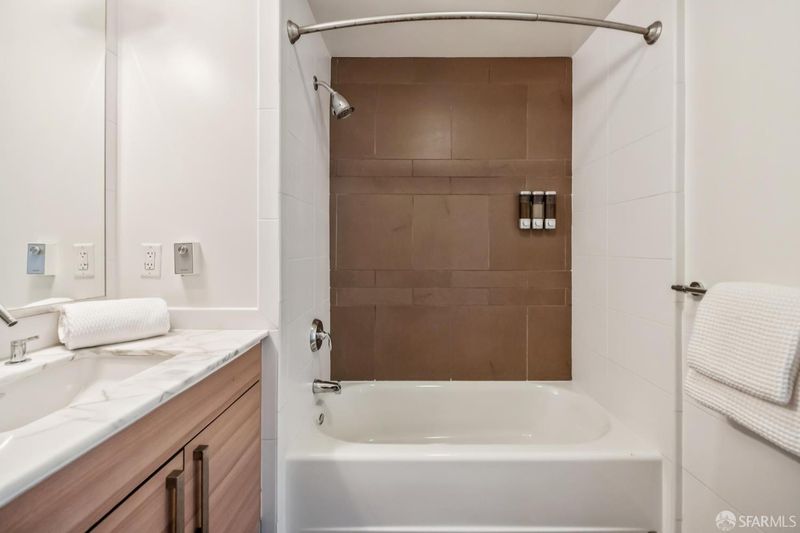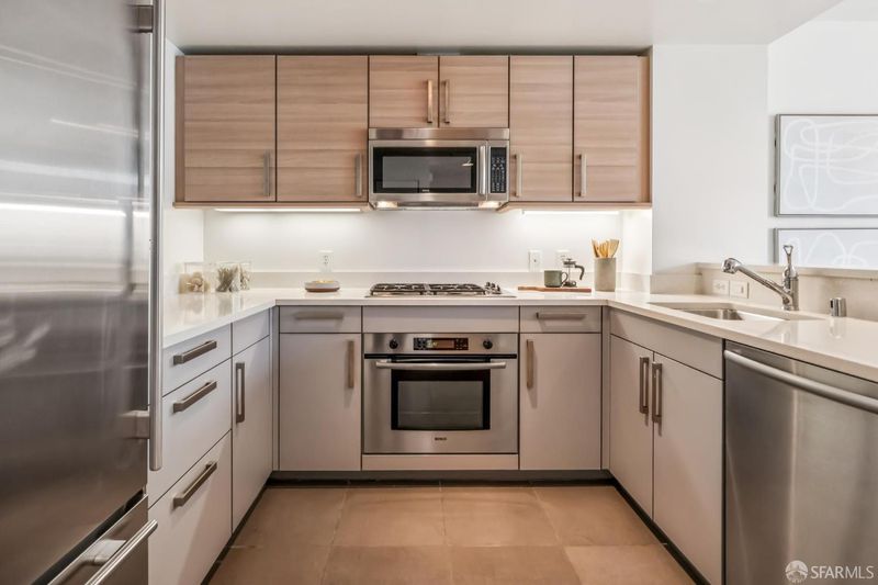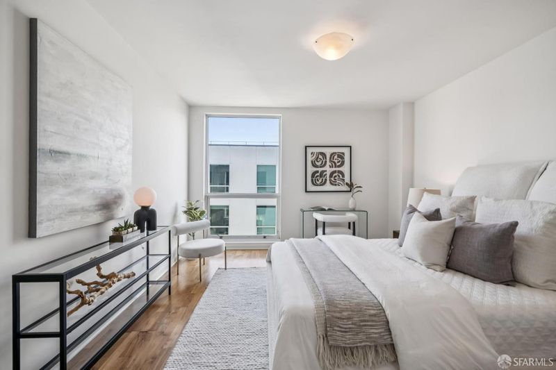 Perched on the penthouse level at The Palms, this sun-filled residence offers a tranquil retreat in one of San Francisco's fastest-growing neighborhoods. Upon entry, the open floor plan is immediately bathed in southern light, creating a warm and inviting atmosphere throughout. The kitchen is thoughtfully appointed with a Sub Zero refrigerator, Studio Becker cabinetry, quartz countertops, and a gas range, an exclusive feature available only on the 9th floor. The open living and dining areas flow seamlessly to a balcony, allowing for fresh air and an indoor-outdoor feel. The generously sized bedroom comfortably accommodates a king-size bed and home office, complemented by ample closet space. In unit laundry completes this home. #926 serves as a true urban sanctuary, with peaceful views. The elevator is conveniently located just steps away and ample leased parking is available. Luxury amenities include 24 hour lobby attendant, gym, business center, movie theater, courtyard & owner's lounge. The new Central Subway line station is just outside the lobby. Located blocks to Cal-train, Whole Foods, Safeway, Oracle Park & The SF Bay. Nearby both 280 & 101 freeways entrances. The Palms is also within a two block radius of an approved 6+ million square feet of mixed-used development, that will re-define the San Francisco Skyline.
