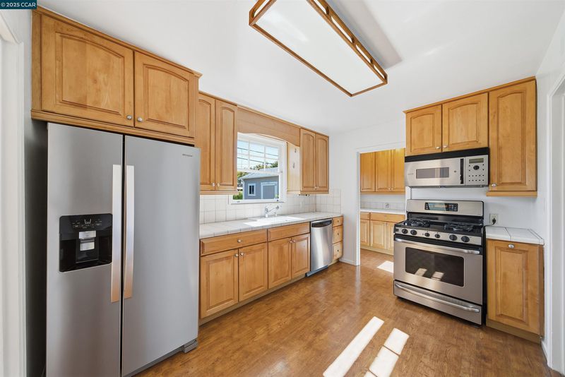 - Dishwasher, Gas Range, Microwave, Refrigerator, Tile Counters, Gas Range/Cooktop, Updated Kitchen