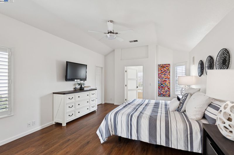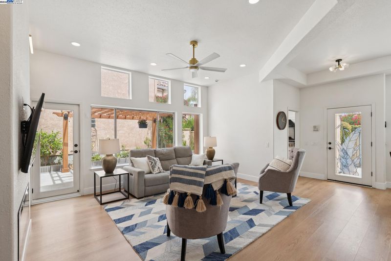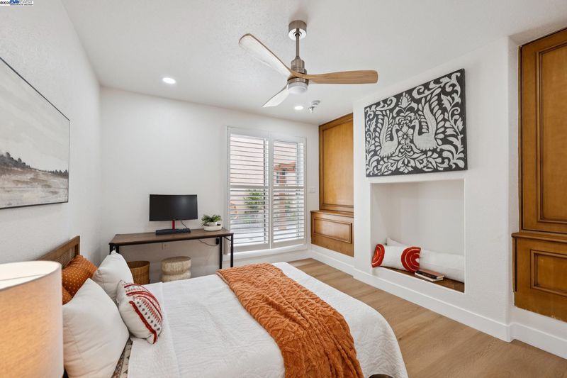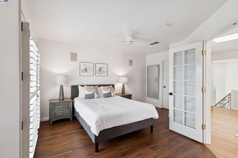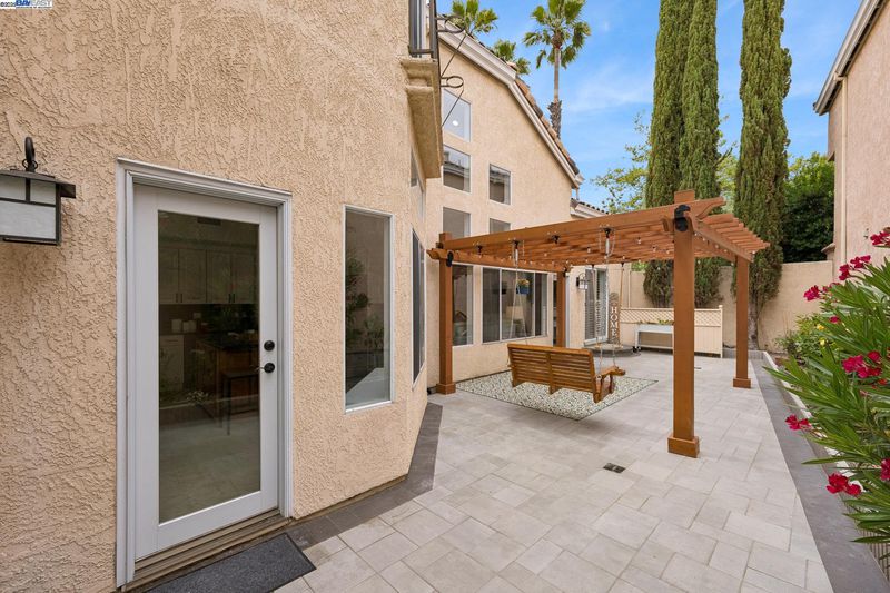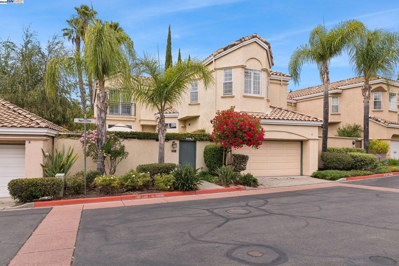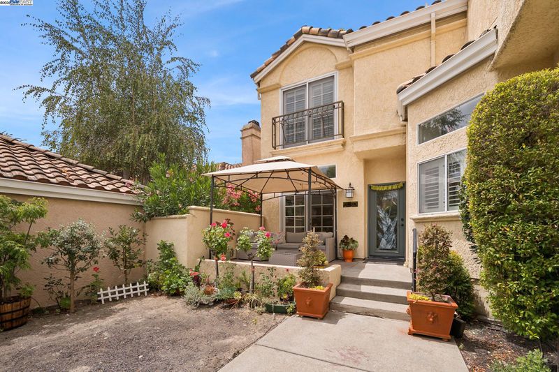 Resort Style Living in the Gated Community Golf Community of Canyon Lake. This Mediterranean Style Home has been Remodeled & Expanded. Ideal floorplan with a very large downstairs bedroom with tall windows perfect for family or guests. Beautifully tiled courtyard entry provides privacy and a space for dining or relaxing and double French door access to the spacious formal dining room with elegant modern light fixtures. The formal living room has electric fireplace, built-in cabinets, lots of windows overlooking the backyard patio & ceiling fan. Gourmet kitchen with center island, granite countertops, refrigerator, built-in gas range, built-in double ovens, & wine refrigerator. Large Family Room upstairs with skylight and lots of windows gives you extra space for entertaining, movie watching or games. Primary bedroom suite has a private Juliet balcony over looking the courtyard, custom designed walk-in closet, ensuite with jacuzzi tub, dual sinks, separate water closet and shower. 2nd bedroom upstairs has skylight and reading nook. 3rd bedroom upstairs has a private Juliet balcony. Upstairs hall bathroom has shower/tub combo. Backyard patio has a charming pergola with bench swing and landscaping. Close to freeways, restaurants, shopping, San Ramon City Center.
