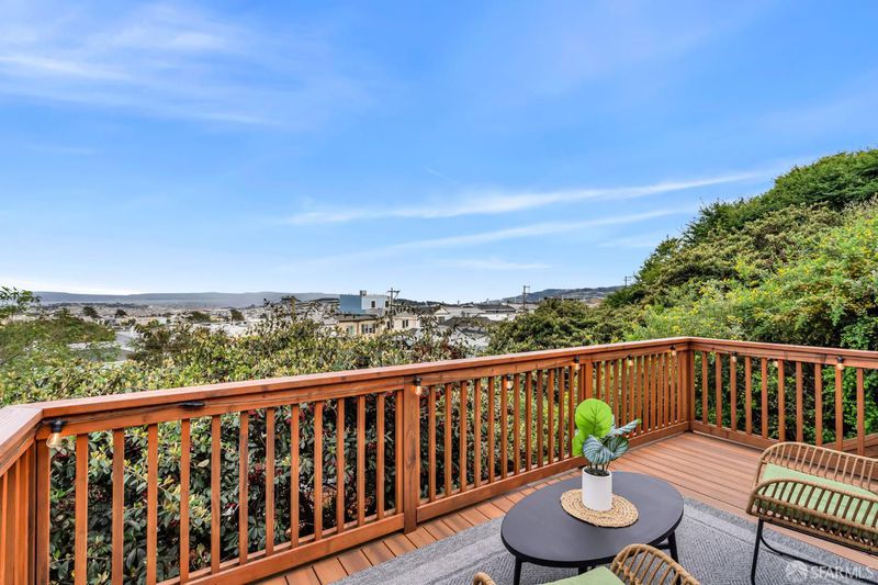 Tucked into the hills of Miraloma Park, this fully remodeled single-family residence offers more than just a home, it delivers a lifestyle defined by comfort, privacy, and effortless design. Thoughtfully upgraded throughout, this 3-bedroom, 2-bathroom home blends modern finishes with functional living across a desirable split-level layout. From the moment you arrive, the refreshed exterior, new roof, and clean architectural lines set the tone. Inside, sunlight pours through upgraded windows, creating a warm, inviting atmosphere that feels both open and serene. At the heart of the home, the remodeled kitchen is designed for connectionperfect for morning coffee, everyday meals, or entertaining guests. It features high-end appliances, abundant cabinetry, and a seamless flow into the living and dining areas. Upstairs, two generously sized bedrooms offer flexibility for family, guests, or a home office, complemented by a beautifully updated bathroom. Downstairs, the private primary suite serves as a peaceful retreat, complete with a custom California Closets walk-in and a spa-inspired bathroom. The outdoor space is a true highlight. This meticulously designed backyard unfolds across three expansive tiers of Trex decking, offering multiple areas to relax, entertain, and enjoy sweeping Bay views from the top level. Surrounded by privacy and thoughtful landscaping, it creates a rare indoor-outdoor living experience. Additional features include a 1-car garage with EV charger and integrated smart home technology, including smart lighting, smart locks, and a security systemenhancing both convenience and peace of mind. With major upgrades already completed and a prime location in one of San Francisco's most tranquil neighborhoods, this move-in-ready home offers a unique combination of style, functionality, and modern living.