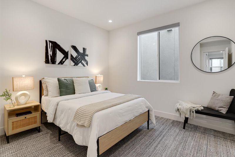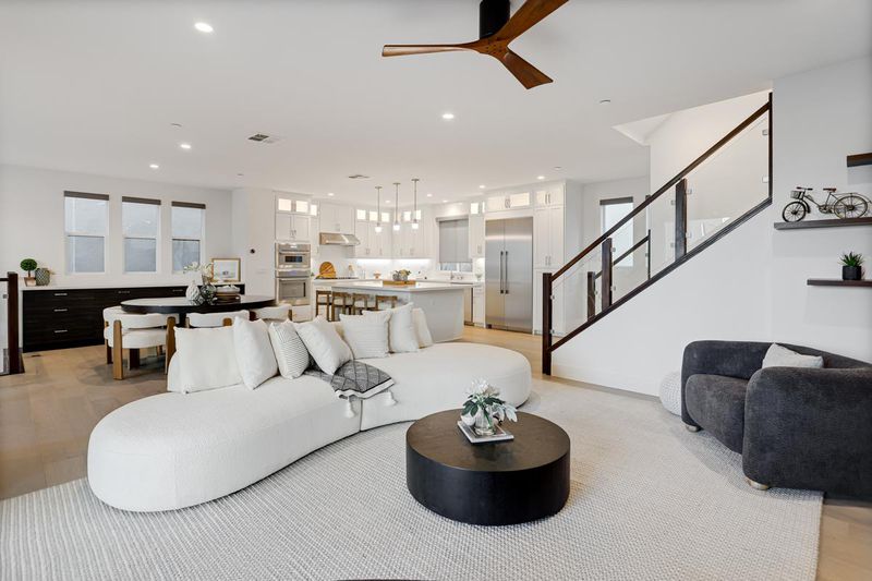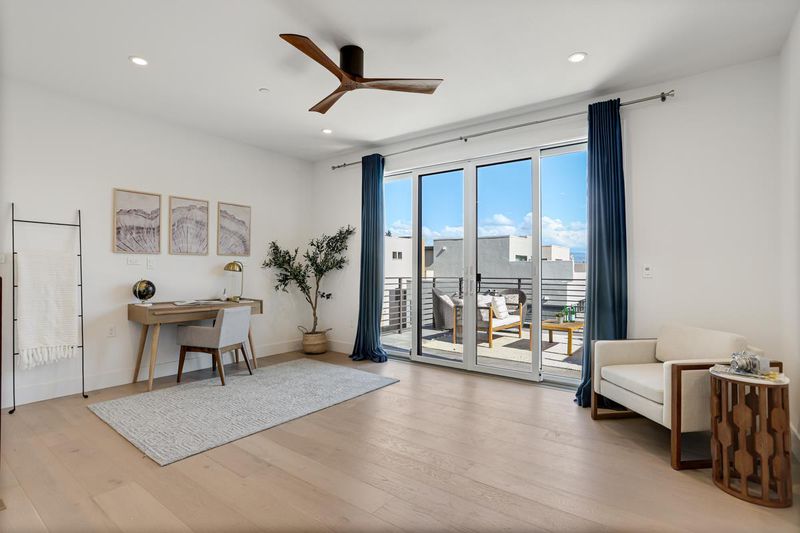Welcome to a masterclass in modern living! This stunning ultra-modern home offers a seamless open floor plan flooded with natural light. The main level features beautiful white oak hardwood flooring and a chefs dream kitchen, boasting a colossal center island with seating, stainless steel appliances, ample white shaker cabinets, & sleek modern hardware. Large sliders transition the living area to an expansive patio. Ground floor features bedroom and full bath. The primary suite is a sanctuary featuring two walk-in closets and a spa-like bath with dual vanities, a sit-down vanity, a massive walk-in shower, and a private water closet. Two additional bedrooms share a Jack-and-Jill bath, while a laundry room with a sink & storage adds daily convenience. The top-floor loft provides a versatile escape with a full bath and a spectacular outdoor/rooftop patio featuring a cozy fireplace. The lower level hosts a fourth bedroom with backyard access and a full bath. Additional premium features include LED recessed lighting, a tankless water heater, water softener, and dual-pane windows with custom/motorized window treatments throughout. Complete with a two-car garage featuring epoxy floors and custom shelving, and covered carport. All situated in Santa Claras newest modern community.