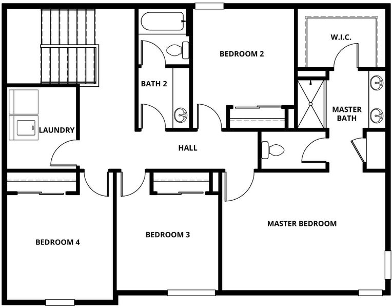 The Stinson floorplan masterfully blends space and convenience across its two stories, featuring five bedrooms and thoughtfully designed living areas. On the first floor, the heart of the home unfolds with an open layout that seamlessly integrates the kitchen, family room, and dining area, creating an ideal space for gatherings and daily living. The kitchen boasts a spacious walk-in pantry, perfect for keeping essentials within reach, and a full bathroom near the fifth bedroom adds versatility and ease. This downstairs bedroom can serve as a guest suite or a private office. The second floor is dedicated to four additional bedrooms, including a generous master suite that offers a retreat-like atmosphere. The master bath is elegantly appointed with a dual sink vanity and a step-in shower, enhancing the sense of luxury. A large laundry room adds to the home's functionality, while the secondary bathroom is well-equipped with a sizable vanity and a convenient tub/shower combination, accommodating the needs of the whole household.