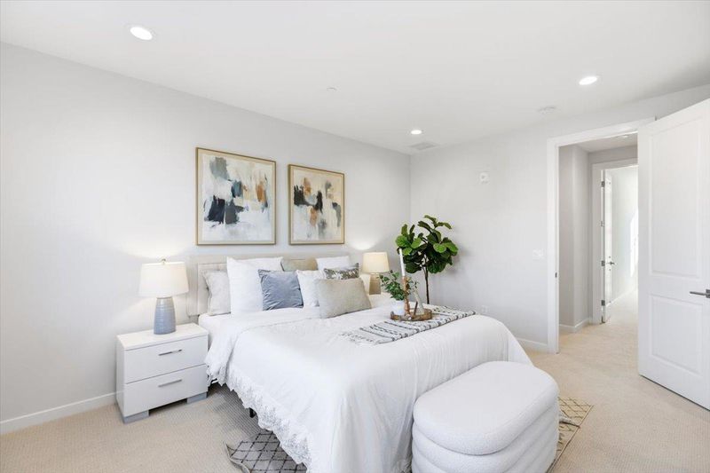 Constructed in 2020 by renowned luxury builder Toll Brothers, this beautifully maintained 3-bedroom townhome is nestled in the desirable Parkside community of Milpitas. What truly sets this home apart is the exceptional natural light that fills the space. Expansive windows invite sunshine into every corner, enhancing the homes airy and uplifting ambiance. To the north, the property enjoys an open outlook toward a tranquil creek and the apartment community beyond, creating a pleasant sense of depth and privacy. The main living level is thoughtfully arranged for modern living. A seamless flow connects the living room, dining area, and kitchen, making everyday life and entertaining feel effortless. A private patio extends the living space outdoors. Upstairs, the primary suite serves as a peaceful retreat with a walk-in closet, dual vanities, and a spacious walk-in shower. Two additional bedrooms provide flexibility for family, guests, or creative space. Low HOA covers water and garbage, along with a valuable solar credit benefit to help offset electricity costs.Conveniently positioned near Great Mall, Bay Area Rapid Transit (BART), Costco, Trader Joe's, and top-rated schools , this home also benefits from no rental restrictions an increasingly rare advantage.