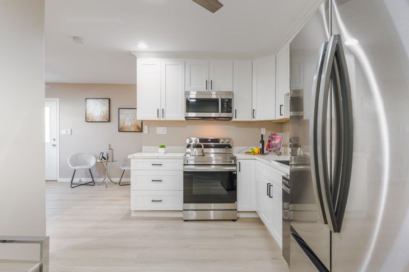 - Countertop - Quartz, Dishwasher, Exhaust Fan, Garbage Disposal, Microwave, Oven Range - Gas, Refrigerator