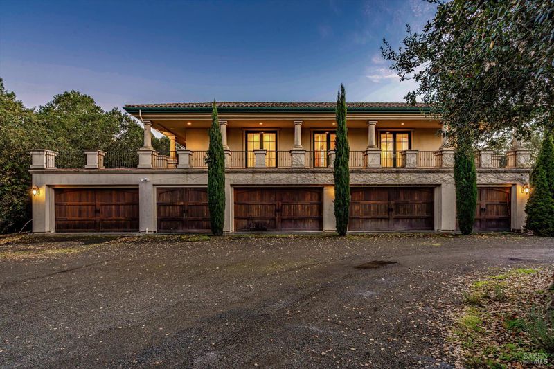 An extraordinary, legacy Mediterranean estate commanding panoramic views over the Sonoma Valley. Privately approached through a dramatic double-gated entry lined with manicured hedges and stately cypress, this rare offering blends architectural presence, privacy, and elevated wine-country living. The main residence spans approximately 4,400+ sq ft with 3 bedrooms and 2.5 baths, complemented by a separate 1-bedroom, 1-bath guesthouse. A detached 7-car garage carriage house with game room and additional guest quarters above offers exceptional flexibility for hosting, recreation, or multi-generational use. Designed to embrace its setting, expansive terraces and an infinity-edge pool frame sweeping Valley of the Moon vistas. Distinctive amenities include a private indoor gun range and a Generac whole-property backup power system, ensuring both discretion and resilience. A hobby vineyard with on-site winemaking facilities completes the estate. Two solar systems support the property, including solar pool heating. Utterly private, yet moments from the Sonoma Plazaan heirloom-quality estate of remarkable rarity in Sonoma Valley.