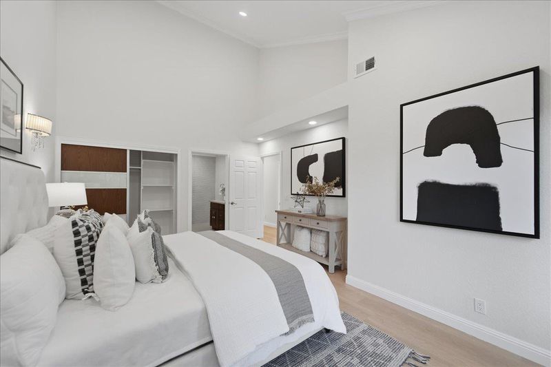 Gorgeous PUD with a lovely backyard extends the living space outdoors in a tranquil gated community, this is the largest floorplan feels like a contemporary single-family home. Location location location. Inside of the home features a well-thought-out, open layout with vaulted ceilings and large windows throughout, filling the space with natural light. A family room with an extended balcony further enhances the sense of openness. 3B/2.5B Offers 2,353 sq ft of comfortable living space with a lovely decked yard. A substantial second living room offers flexible use as an office, playroom, media room, or cozy den. Updated eat-in kitchen with recessed lighting, stainless appliances and granite counters. Large dining and living area, family room w/ balcony and dramatic high ceilings, Large master suite w/ dual sinks, recessed lights. AC, ample closet space, inside laundry, Convenient attached 2 car garage. The home features brand-new flooring throughout. Quite and private, but close and convenient to all amenities such as SV downtown, restaurants, parks, schools, community center, and major tech companies. Easy access to hw 85, 280, Cal Train & Central Expwy ensures breeze commuting. HOA covers Community Pools, roof and more.