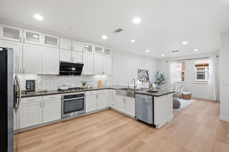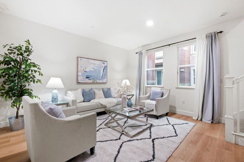 *This beautifully appointed residence blends modern comfort with thoughtful design, beginning with generous 9-foot ceilings, wide-plank flooring, and a spacious ground-level family room filled with natural light from large windows. A side-by-side two-car garage includes practical storage racks. *The kitchen is sleek and highly functional, featuring abundant cabinetry, stylish countertops, a full backsplash, stainless steel appliances, and a breakfast bar. Recessed lighting and an efficient layout enhance both form and function, while the open connection to the living and dining areas encourages a warm, social atmosphere. *Expansive windows and a sliding glass door fill the room with natural light, and open onto a private balcony. Additional highlights include in-house laundry, central air conditioning, Elfa custom closets, Hunter Douglas shades, a whole-house water filtration and softener system, an under-sink RO system, and a fully integrated smart-home setup. *Near Townsend Park, Mercado Park, Bruzzone Dog Park, and San Jose Municipal Golf Course. Vinci Park Elementary (8/10, GreatSchools) is nearby. Shops like Safeway, H Mart, Ranch 99, and Costco are close. Commuters have easy access to Nvidia, Google, Apple, and Supermicro.