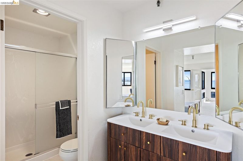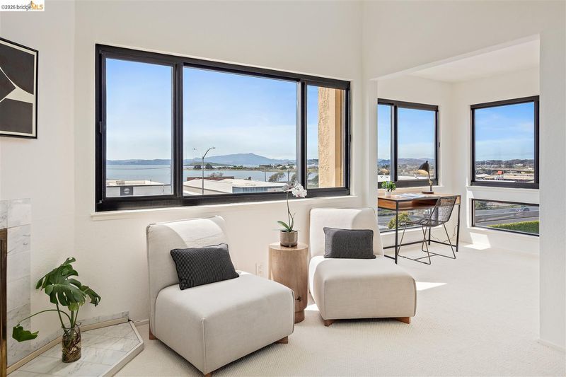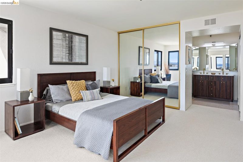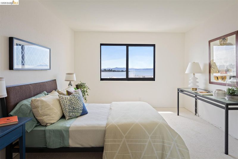 Crowning the top floor, this standout residence is one of the best-located units in the building, offering sweeping Bay views, exceptional natural light, and soaring ceilings that create a bright, open feel throughout. The layout features two en-suite bedrooms, providing both comfort and privacy. Recent updates include new carpet, a new bathroom vanity, and a new refrigerator and range—making it easy to move right in. Additional highlights include in-unit laundry, two deeded parking spaces, and a separate storage room. HOA amenities include a pool, fitness center, and clubhouse. Set in a prime Albany location with easy access to shopping, dining, AC Transit, BART, and freeways—everything is within reach. Top-floor privacy, great light, and some of the best views in the building—this is a rare opportunity.