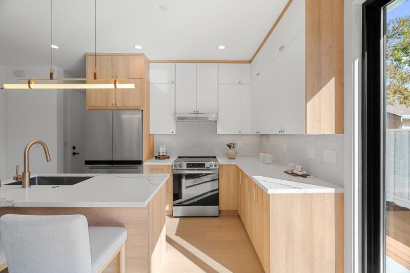 Brand-New Home in Prime Sunnyvale -Exceptional Value for New Construction! Stunning new build by AL Homes offering 3 bedrooms, 2.5 baths, and 1,807 sq. ft. of thoughtfully designed living space. Features include an open-concept layout with engineered wood flooring, a chef-inspired kitchen with a waterfall-edge island, floor-to-ceiling cabinetry, and stainless steel appliances. Bathrooms feature modern soaking tubs and slab countertops. Expansive 4-panel sliding glass doors open to a beautifully finished backyard, perfect for relaxation or entertaining. Located just minutes from downtown Sunnyvale, tech hubs, and parks. Includes a 4 kW solar system, pre-wired EV charging, and energy-efficient features throughout.