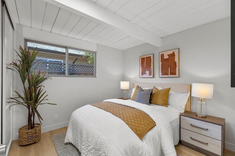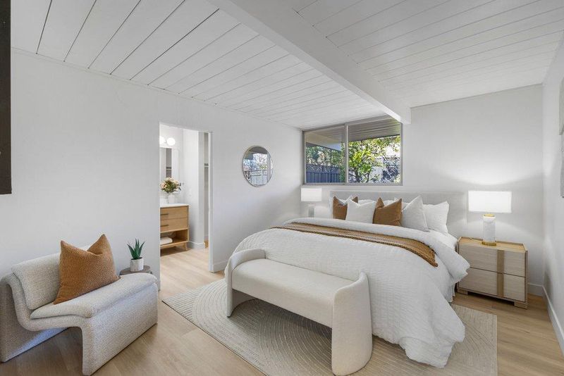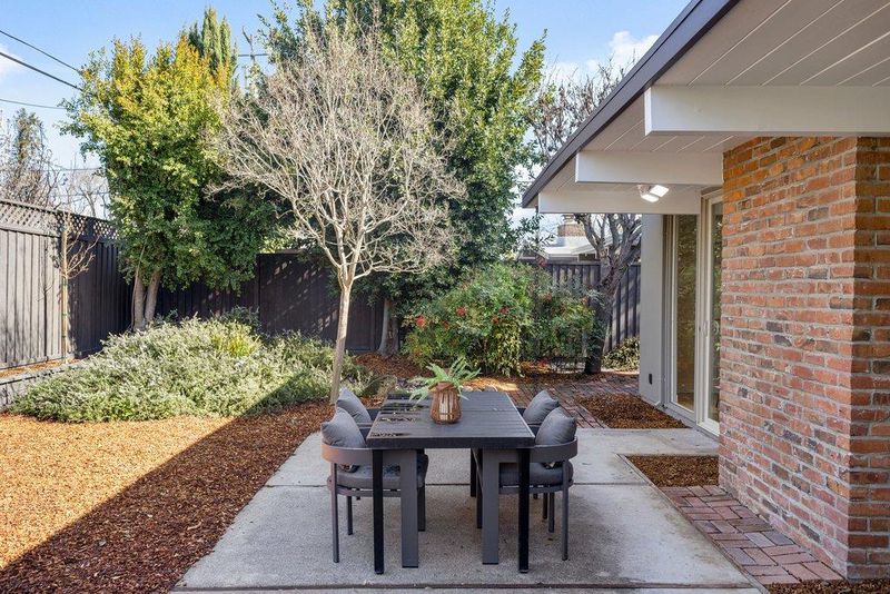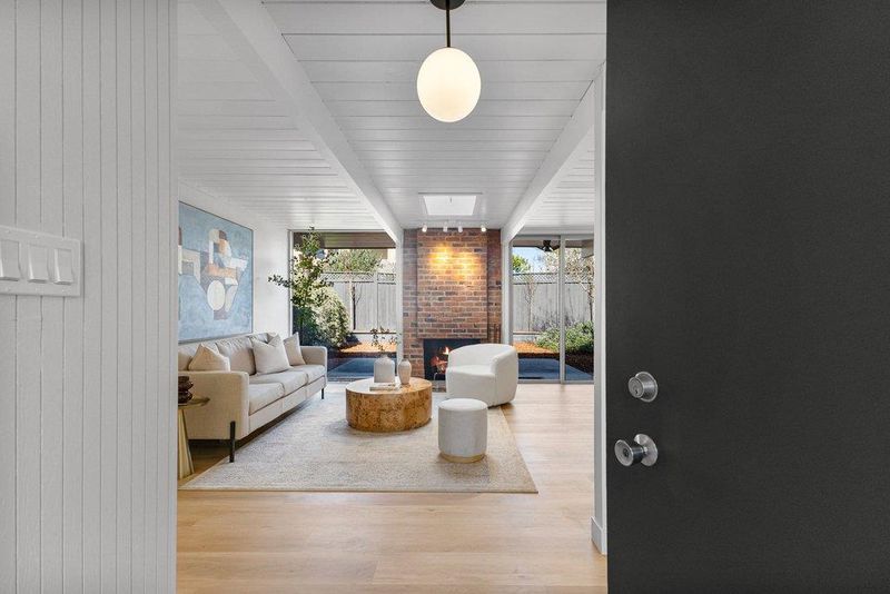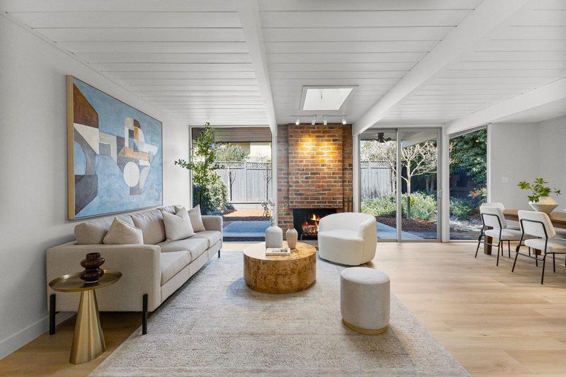 Beautifully updated courtyard Eichler in the desirable Fairgrove/Cupertino neighborhood. This home offers a serene, sophisticated feel with a seamless blend of indoor/outdoor living and iconic Eichler features, including courtyard entry, floor-to-ceiling glass, radiant heat, exposed wood beams, and tongue-and-groove ceilings. The beautifully remodeled kitchen features custom cabinetry, Corian countertops, and newer appliances, including an electric cooktop, built-in oven, opening to a spacious dining and family room. The stunning living room showcases a large brick fireplace flanked by walls of glass and a slider to the patio. The primary suite offers a tastefully updated bath. Additional highlights include fresh exterior/interior paint, LVT flooring, an updated boiler, a foam roof, skylights, updated light fixtures, an indoor laundry area, and more. Enjoy the spacious, low-maintenance backyard with a concrete patio and mature plants and shrubs, perfect for relaxing or entertaining. Large attached 2-car garage with ample storage. Centrally located near major tech campuses with easy access to Highways 85/280. Tight-knit Fairgrove community with a short walk to schools, parks, shops, restaurants, and easy commuting. Top Cupertino schools: DJ Sedgwick, Hyde Middle & Cupertino High.