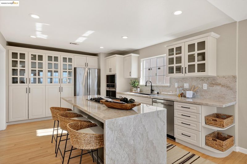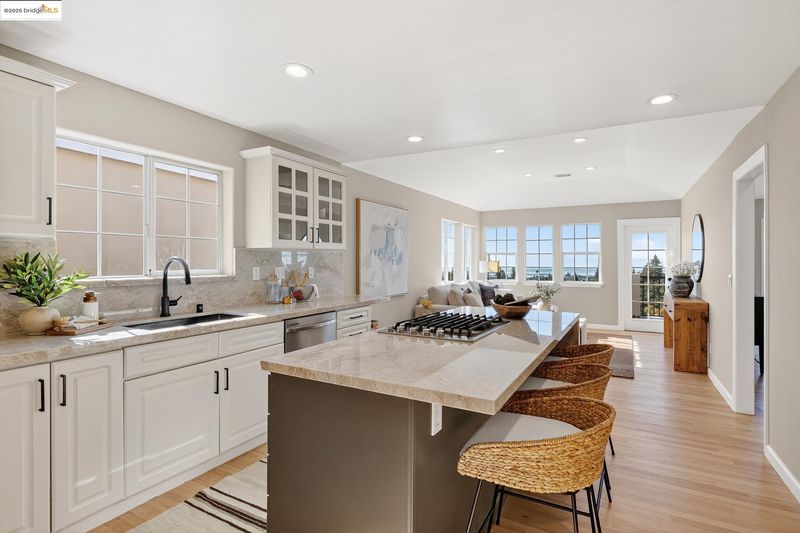 Stunning Bay View Home with Mediterranean Elegance. Experience breathtaking Bay views from this exquisitely updated residence showcasing serene Mediterranean details throughout. This exceptional property features soaring ceilings that create an airy, spacious atmosphere flooded with natural light. The chef-inspired kitchen is a showstopper with stunning quartzite island, countertops, and backsplash—designed for both functionality and style. The home offers four spacious bedrooms and three full bathrooms. Cozy up by one of two fireplaces—one in the living room and another in the primary bedroom. Two expansive decks extend your living space, perfect for entertaining or relaxing while enjoying spectacular views. The basement provides abundant storage, and a two-car garage offers additional parking. Situated in a prime central location, you'll enjoy easy access to shopping, dining, and entertainment. Commuters will appreciate convenient freeway access, while nature enthusiasts will love the proximity to majestic redwood groves and scenic hiking trails. This rare combination of luxury finishes, spectacular views, and unbeatable location creates an exceptional offering. Don't miss your chance to own this Mediterranean-inspired gem where everyday living feels like a vacation.