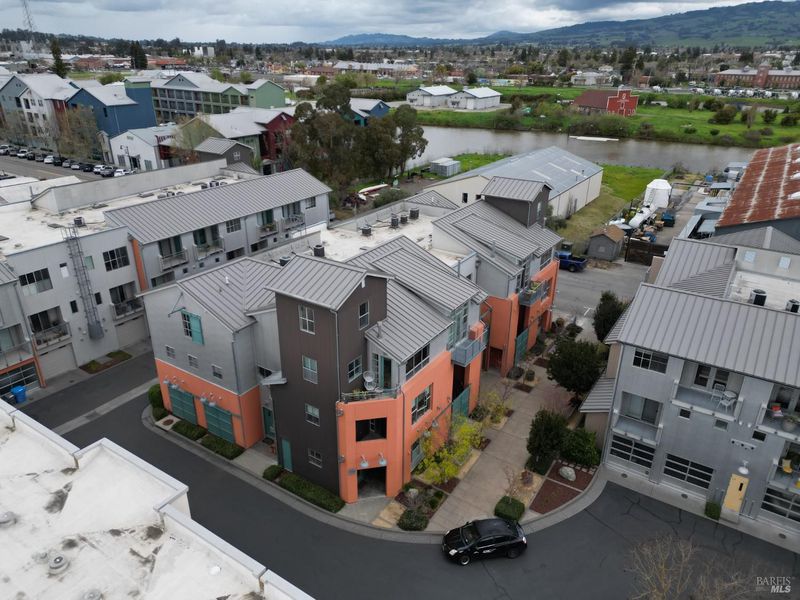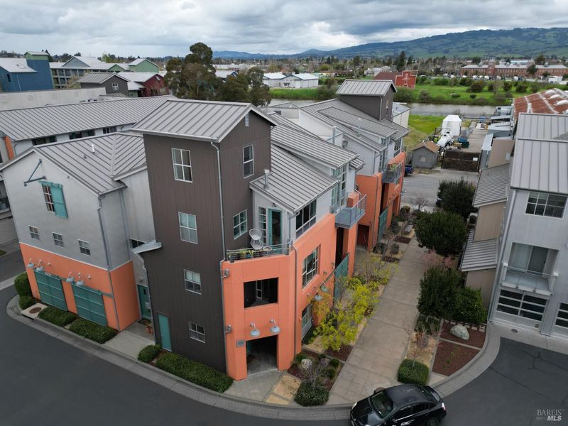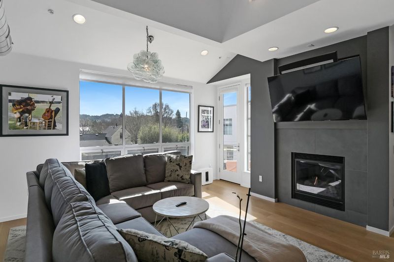 Ever dream of living in a big city loft but want to enjoy the charms and joy of living in the heart of Petaluma? Then welcome home to Celsius 44! A Ring camera doorbell and glass entry greet you into a bright space with gorgeous flooring found throughout the home. Stairs lead to the 2nd level with the primary suite, complete with private balcony, electric fireplace heater, built-in shelving, deep soaking tub, walk-in closet, and spacious shower. A laundry closet, access to stairs down to an oversized 1-car garage, sitting area, and under-stair storage complete the level. The top level is stunning with open-concept kitchen with Wolf wall oven, counter-depth refrigerator, and large island with gas cooktop and bar seating for the perfect place to gather. Or get cozy in the family room with vaulted ceiling, light-filled windows, and a gas-insert fireplace. Fresh air is found on the private corner balcony. Living areas include a half bath, full bath, and two guest rooms with access to another balcony! Ready to impress? Take the spiral stairs up to your own bar built with reclaimed materials and featuring two refrigerators, a tap, and incredible hill views! Stay cool inside with the central A/C or venture to downtown Petaluma mere moments away for all the fun this town has to offer!