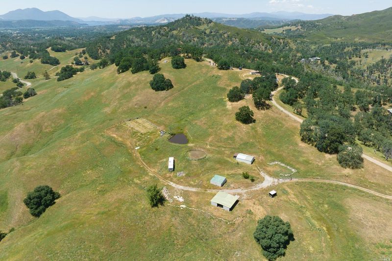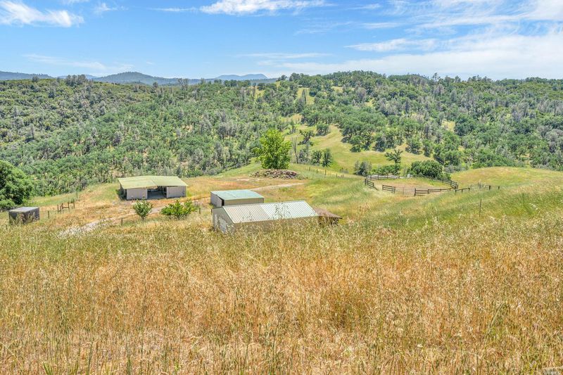 Forever Views! Quiet hillside location with sweeping valley views includes a ten acre parcel with room for future expansion and several building envelopes for your ideas. Current house has laminate floors and a spacious kitchen with granite tile countertops, dishwasher, electric range and fridge. Built in pantry/desk area for efficient use of space and storage. Enter the hallway and to your left is full bath with shower, directly ahead is washer/dryer and to your right is large bedroom with full length wall closets. Dining area opens with French doors to huge deck to enjoy the serene views. Property lends itself to many uses and already has four water storage tanks, 1 car garage near house and circular driveway for lots of parking. Down below there are several outbuildings including an insulated shop/barn, open air barn/stall area, garden beds, greenhouse structures and even a vintage trailer home to fix up if you'd like. Just three miles outside of Lower Lake for shopping and convenience, yet feels like a private oasis away from it all with your nearest neighbor being a peaceful vineyard. If you've been dreaming of a ranch style escape, bring your ideas and explore this affordable option!