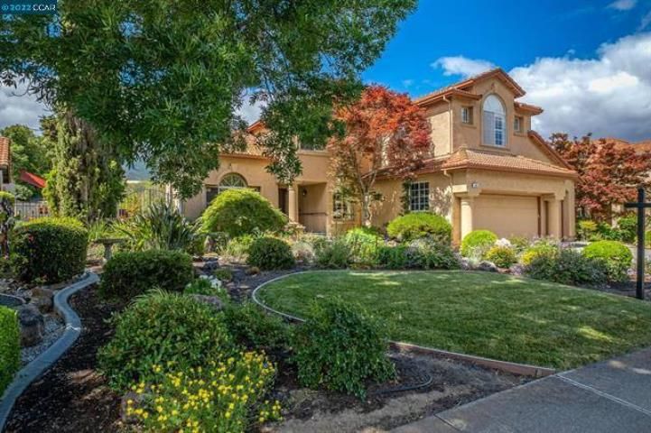 Breathtaking views of Mt. Diablo with an exceptional court location. Five bedrooms (full bed and bath downstairs) & 3 baths. Remodeled kitchen features custom cabinets, gorgeous granite countertops & backsplash, recessed lighting, a large center island, separate coffee/entertaining bar, a convenient eating area & a nice pantry closet. The open floor plan includes a family room with gas fireplace, living room, formal dining room with vaulted ceilings & separate laundry room. Large and private owners suite includes a spacious walk in closet, soaking tub, and gas fireplace. Other features of this home include rich oak plank hardwood flooring downstairs, impressive center staircase, gorgeous front doors, plantation shutters. Large 3 car garage. New $50,000 solar panel system, new Bosch HVAC system. Professional landscaping w/ automatic irrigation & lighting, lap pool w/spa (with amazing views). Easy access to schools, walking paths, Mt. Diablo State Park& downtown Clayton