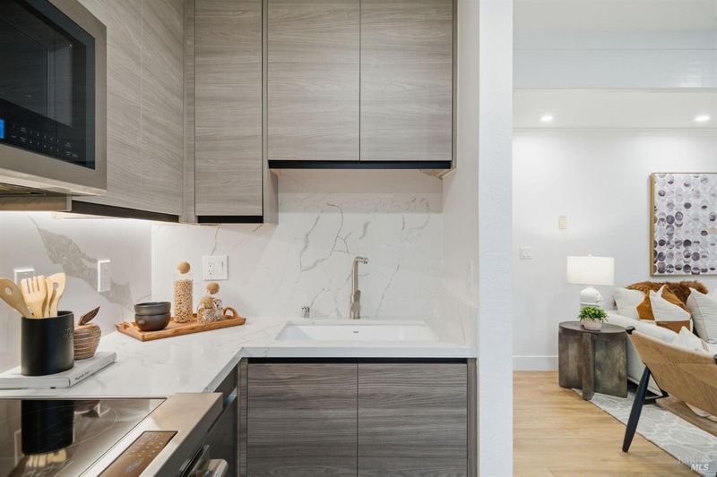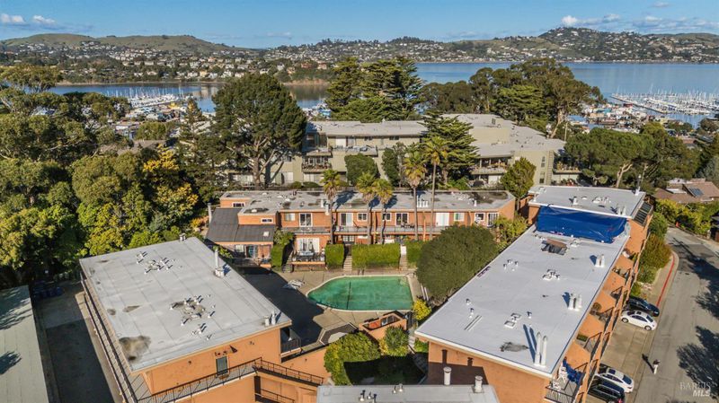 Sausalito need we say more? This exquisite condominium has been lovingly remodeled and modernized for the discerning buyer. It is a generously sized one-bedroom, one-bath residence with a huge deck overlooking the pool and the calming greenery of the Marin Headlands. The interiors are rich and luxurious, featuring a stunning stone peninsula with a waterfall edge, all-new kitchen cabinetry, a JennAir induction stove and oven, JennAir microwave, and a French-door refrigerator. A corner wood-burning fireplace adds warmth, while dual-pane windows and a sliding glass door bring in abundant natural light. Additional upgrades include a new electrical panel with updated in-wall wiring and recessed lighting throughout the condo. A newer full-size LG washer and dryer and a spacious walk-in closet complete the home's thoughtful improvementsall completed in 2024. The bathroom was remodeled in 2020 and includes a walk-in shower, a skylight with automatic open-and-close functionality and rain sensor, and premium Toto fixtures. Solid-core interior doors with satin hardware reflect the exceptional attention to detail throughout this stunning condo. A rare turnkey opportunity to enjoy the relaxed Sausalito lifestylenature at your doorstep and San Francisco just a quick ferry ride or drive away.