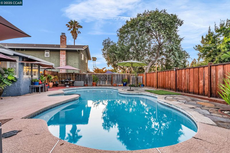 Best deal on the market for a 4-bedroom in all of Concord! Situated on a quiet cul-de-sac, in the sought after Kirkwood neighborhood, this gem awaits your vision. Fall in-love with the entertainer’s dream yard with a newly resurfaced sparkling pool, inviting seating area, and lush gardens, all framed by treetop views and distant hills. The kitchen opens to the family room and flows seamlessly to the private yard, perfect for hosting and outdoor living. Recent improvements include a new electrical panel, new fence, stainless steel appliances, granite countertops, French drain, custom window shutters, new vinyl sliding patio doors with built-in shades, upgraded pool equipment, gas fireplace, and ceiling fans. The seller has cherished this home for years and is ready for new owners to make it their own. Tackle the cosmetic TLC needed and watch your equity soar.