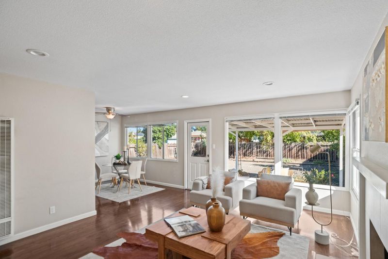 Ideal layout around the corner from sprawling Columbia Park! The open-concept kitchen boasts peninsula with seating and connected dining area that's perfect for entertaining. The living room is filled with natural light from five windows and features charming stone fireplace and backyard access well-suited for hosting. All bedrooms offer abundant natural light and cute display shelf above each closet, while the updated bathroom adds modern comfort. The home's light exterior is complimented by a rich blue front door and mature front landscaping that provides fantastic shade. The backyard offers both covered and exposed patio for year-round comfort, large open area, and raised planting boxes along one edge ready for gardening or flowers. Prime Silicon Valley location around the corner from Columbia Park at Columbia Middle School; close to major tech employers; near high-end amenities including convenient groceries, scrumptious restaurants, and eclectic shops; with proximity to miles of hiking, walking and biking trails; and easy access to Highway 101, Freeway 237, and other major thoroughfares for commuters! Plus, students have access to excellent schools in Bishop Elementary, Columbia Middle, and Fremont High (buyer to verify)!