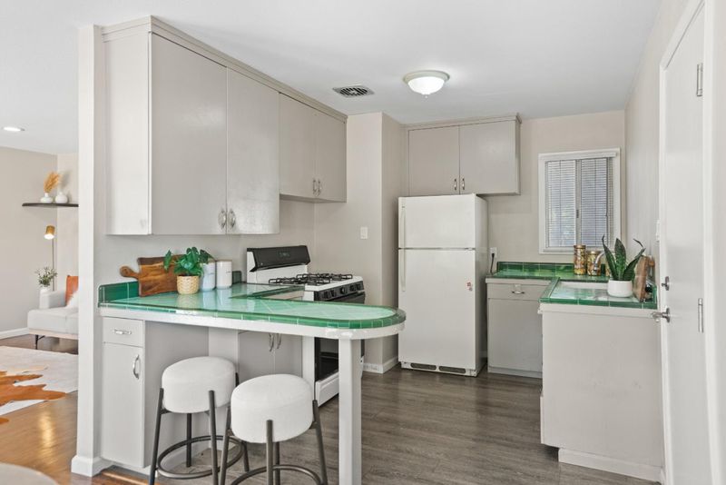 - Countertop - Tile, Exhaust Fan, Garbage Disposal, Oven Range - Gas, Refrigerator