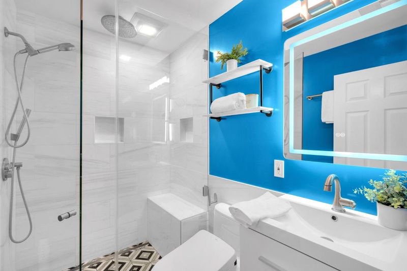 - Bidet, Dual Flush Toilet, Full on Ground Floor, Granite, Primary - Stall Shower(s), Skylight, Solid Surface, Stall Shower - 2+, Stone
