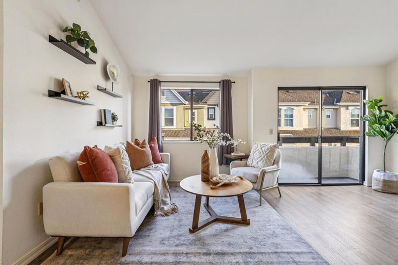 Enjoy incredible views from this stunning top-floor penhouse style condo! The inviting living room showcases vaulted ceilings, a wood-burning fireplace, and a private southeast facing balcony perfect for relaxing and entertaining. A separate formal dining area complements the beautifully remodeled kitchen, featuring granite countertops, stainless steel appliances, and designer hardware. Abundant natural light pours through large windows, highlighting the wide-plank laminate flooring and stylish finishes throughout. Central forced-air heating and an in-unit washer and dryer (included with sale). Located in a well-maintained, 30-unit building with elevator access, open-air corridors, and a peaceful central courtyard sanctuary. Separate storage room and private two car garage deeded to the condo, along with additional guest parking. Ideally situated near the Bay Trail, Coyote Point, shopping, schools, transportation, freeway access, and vibrant downtown San Mateo. Part of the highly rated Aragon High School district. The HOA covers building and landscape maintenance, water, garbage, and professional management. The community is pet-friendly with no rental restrictions. An absolute must see for those seeking, value, convenience and the very best of San Mateo living!