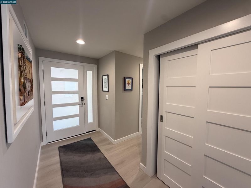 Experience refined living in this fully reimagined level-in Villa Robles condo, with a total interior remodel completed April–July 2024. Step into modern elegance, with high ceilings, Milgard dual-pane windows (installed July 2025), and a seamless indoor-outdoor flow to the private deck. The widened, custom-designed kitchen is a true showpiece, crafted with white shaker cabinetry, double pantry, a smart “magic corner”, and top-tier Friedman Appliances, including a double oven and microwave. Both bathrooms feature porcelain Arizona Tile, custom barn-style glass enclosures, heated toilet seats, and sophisticated fixtures. Designer touches include shaker-style interior doors, new flooring and carpet from Carpet One, remote-controlled window treatments, and Electrolux washer/dryer. Smart upgrades—Ring doorbell, Yale lock, recessed lighting, and ceiling fans—blend style with convenience. The finished garage adds epoxy flooring, drywall, and carpeted steps to this meticulously curated home, with newly renovated and painted exterior walls, balconies and stairwells completed by Mutual 70 HOA. Begin your Rossmoor lifestyle today!
