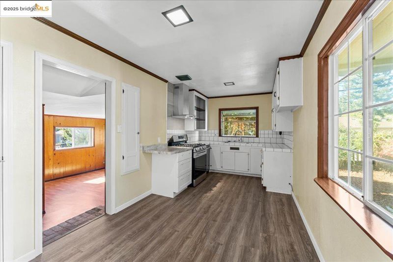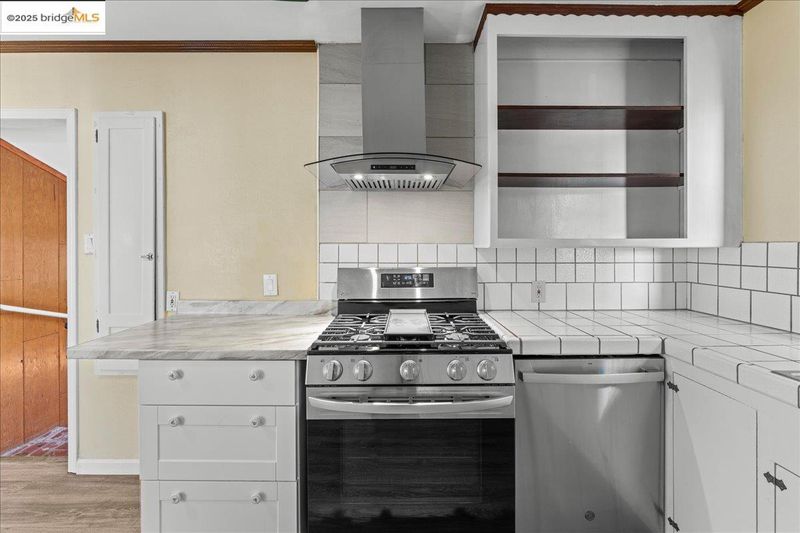 - Dishwasher, Gas Range, Refrigerator, Dryer, Washer, Gas Water Heater, Counter - Solid Surface, Tile Counters, Eat-in Kitchen, Gas Range/Cooktop