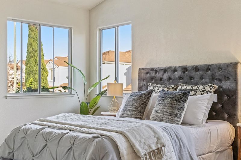 This modern three-bedroom home in desirable Bay Farm offers a spacious floor plan and a generously sized, private backyard. Potential for loft addition above dining area. Vaulted ceiling in the living room. Two-way fireplace. Kitchen and family room overlook backyard. Private backyard with updated landscaping ideal for gatherings. Triple pane windows. Not on land fill. Lower HOA dues of $187/mo. 2-car garage with spacious driveway. Ample guest parking on main street. Close to parks, top performing schools, Oakland Airport, & SF, ferry.